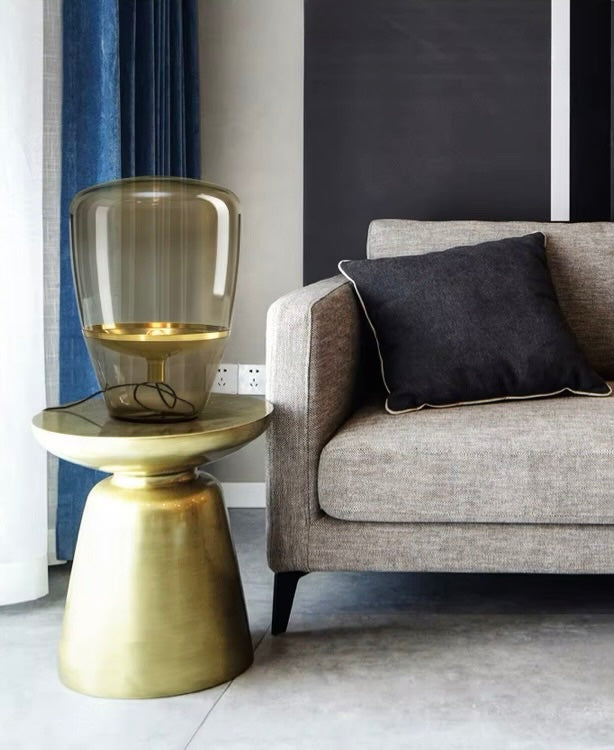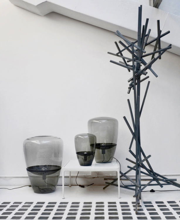 Its rounded form captures the calm between transparency and depth, in Smoke Grey, Amber, or Clear Glass.Each version reveals a different rhythm of glow where light softly breathes through the material.